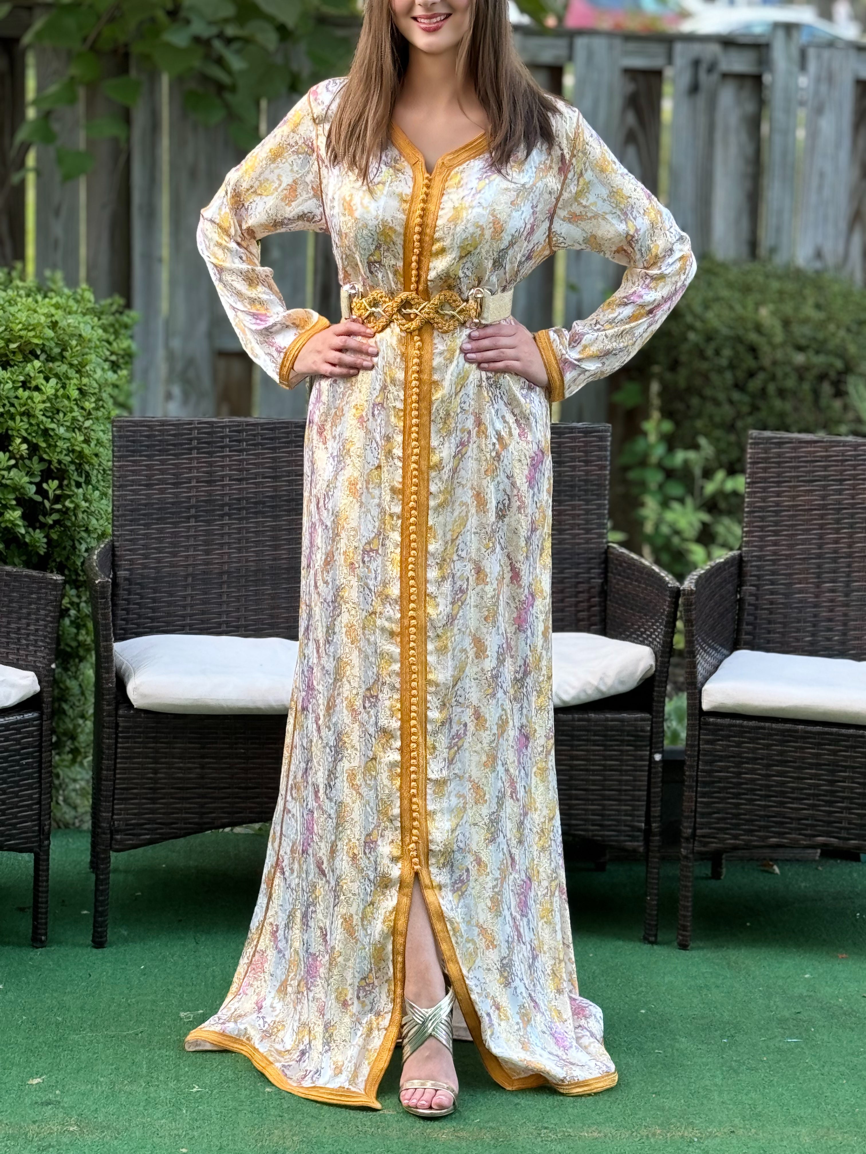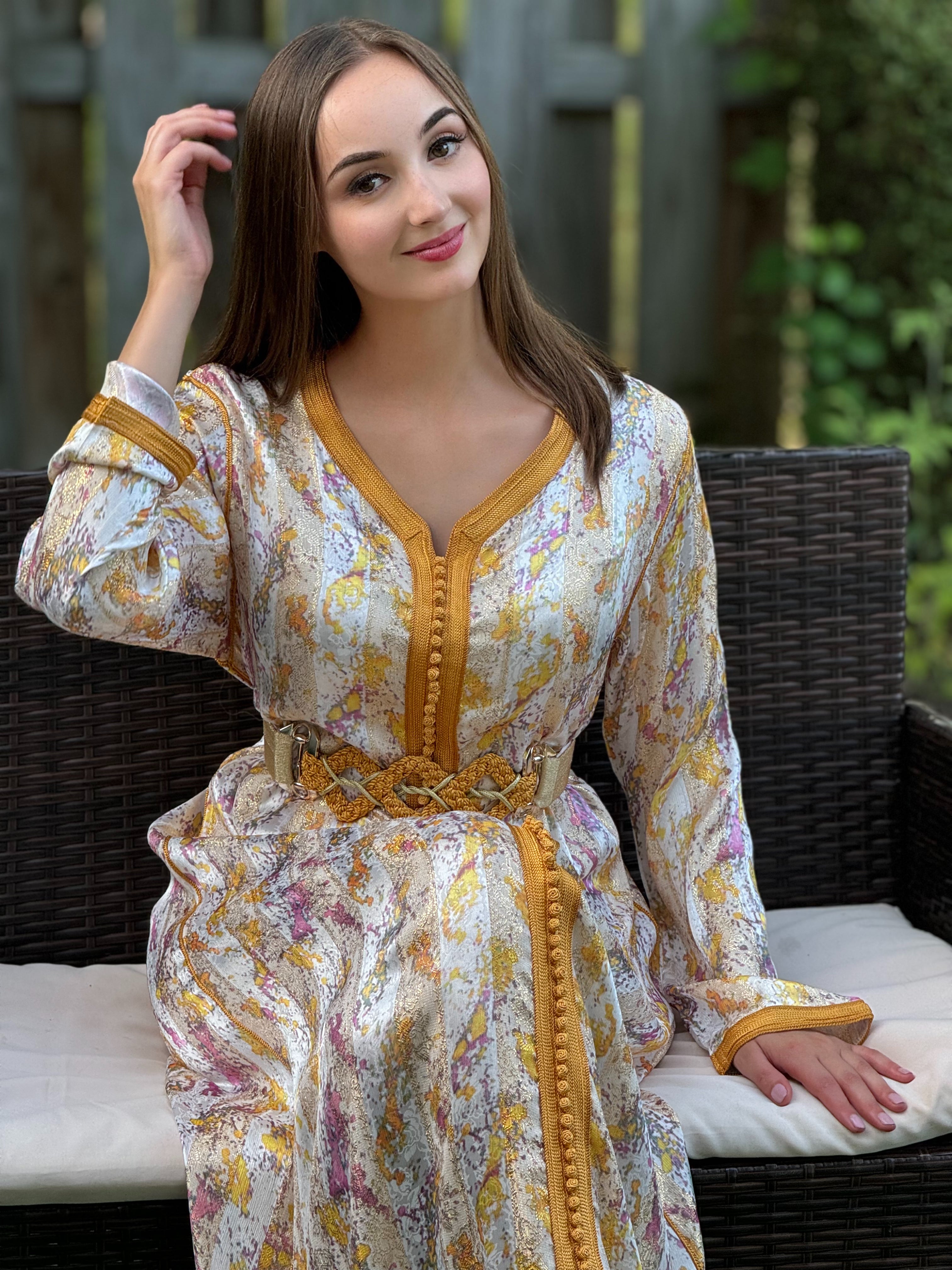 Elevate your style and create a lasting impression with the Caftan joulya Whether it's for a wedding, celebration, or cultural event, this caftan will have you looking and feeling absolutely exquisite. Order yours today and experience the timeless allure of Moroccan fashion