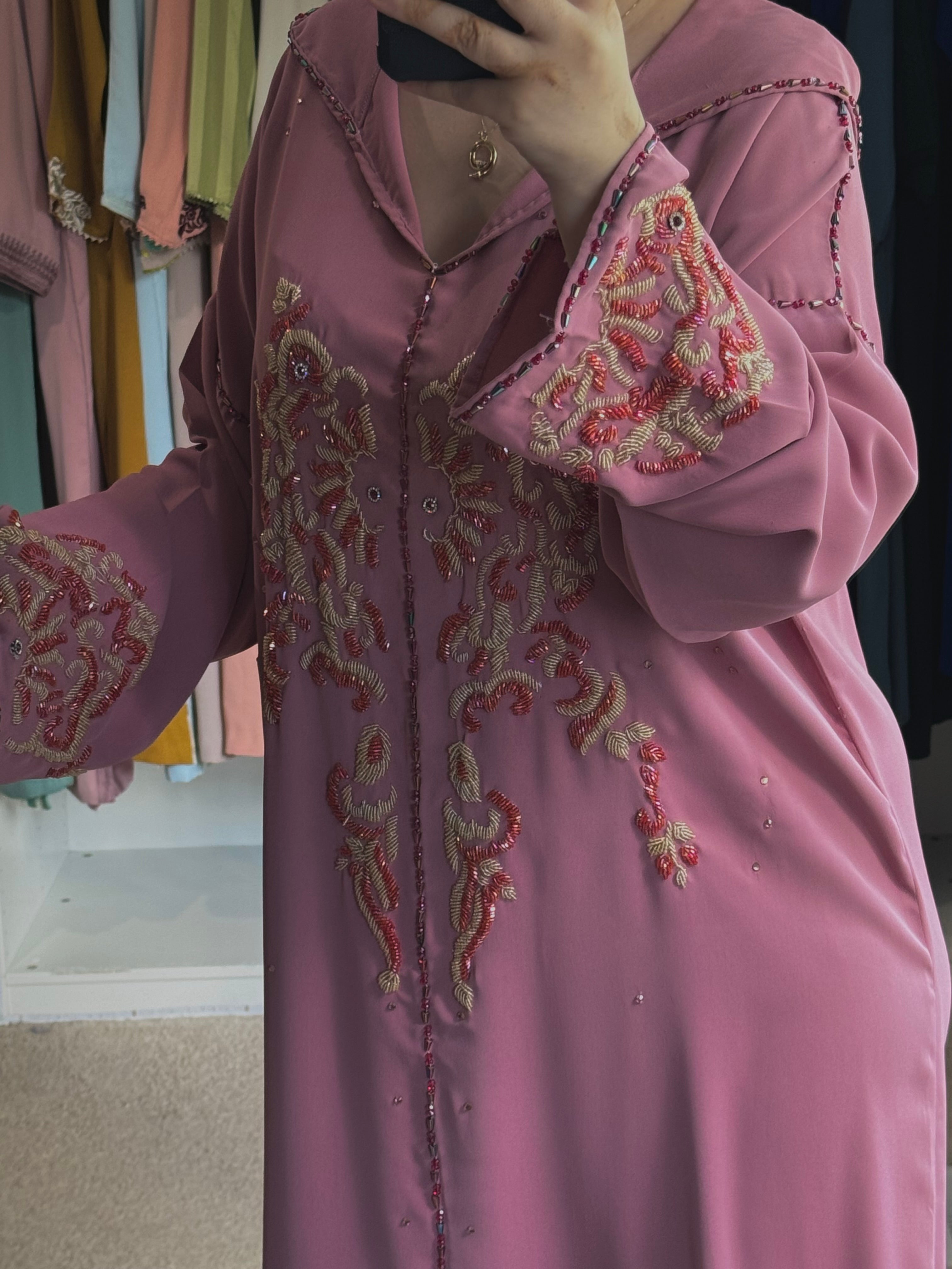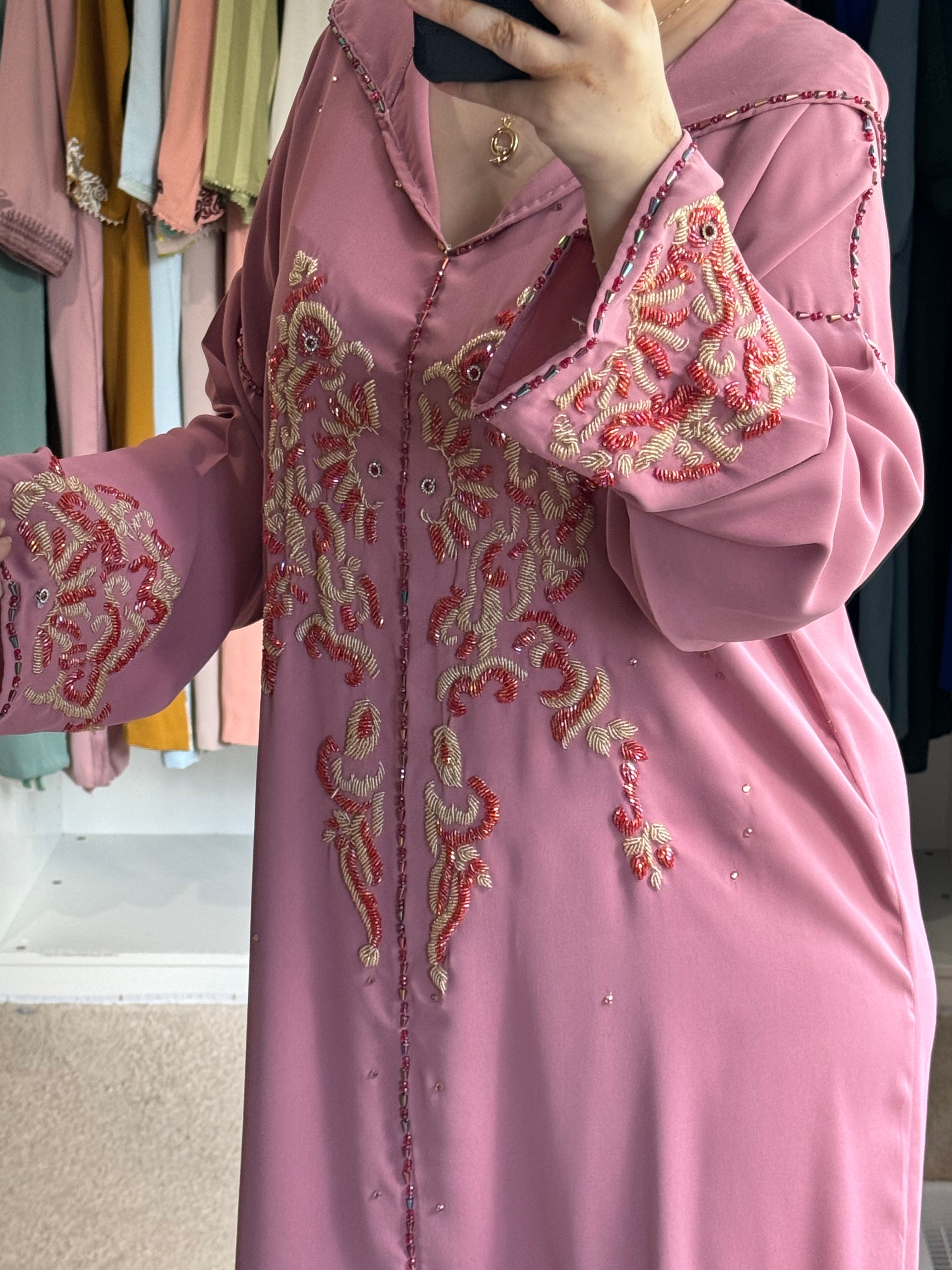 A unique, high-quality Jellaba with handmade bead details, offering a luxurious and stylish look.