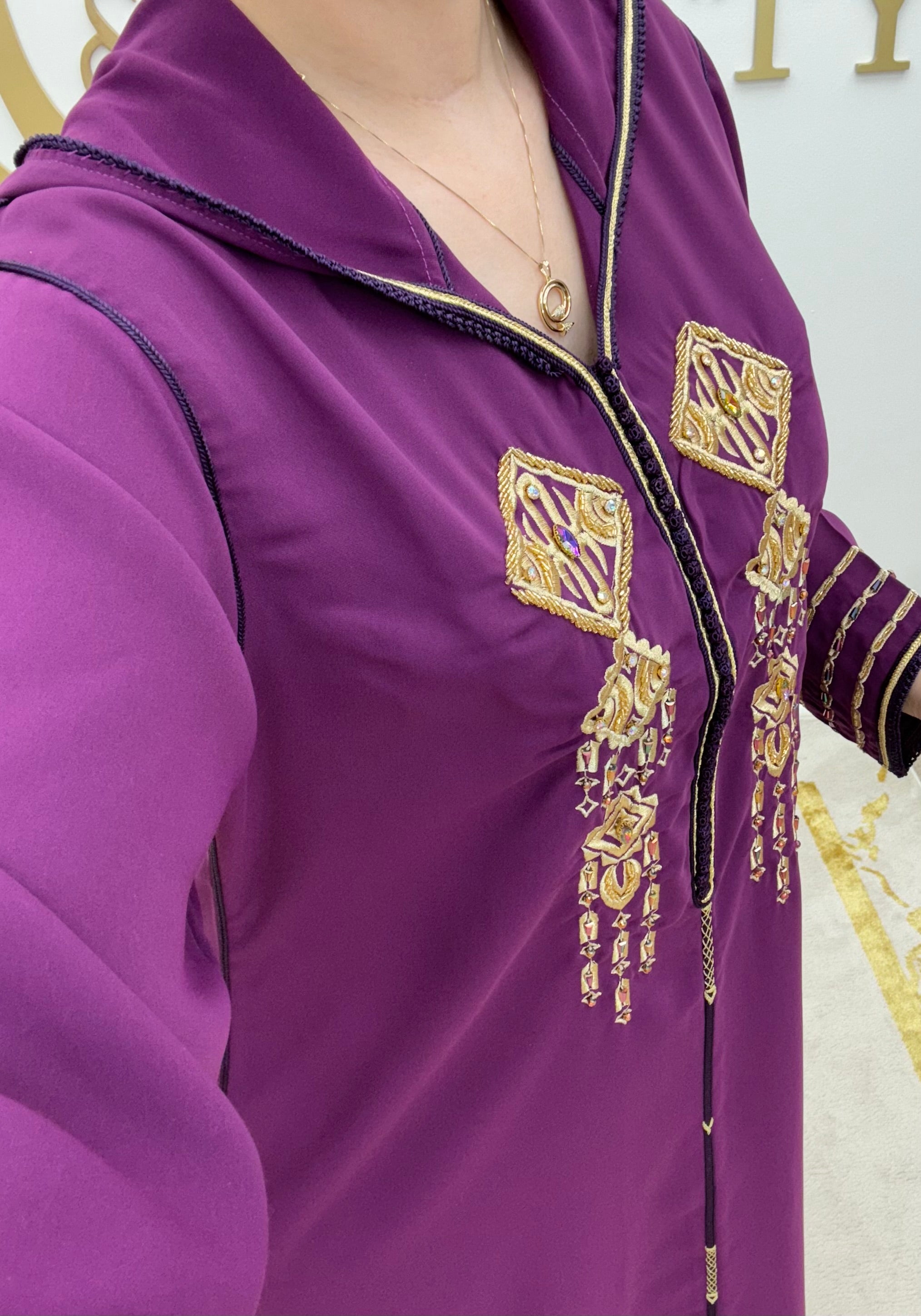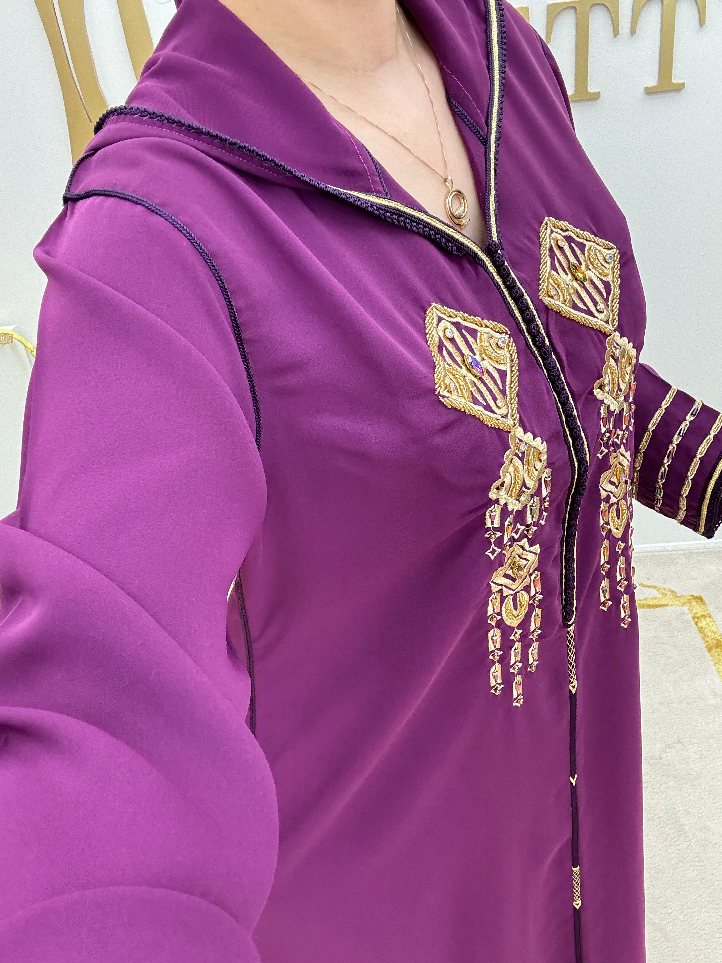 Experience luxury with the Jellaba Hafsa . Crafted with high-quality materials, it exudes elegance and sophistication, making a statement at any formal event.