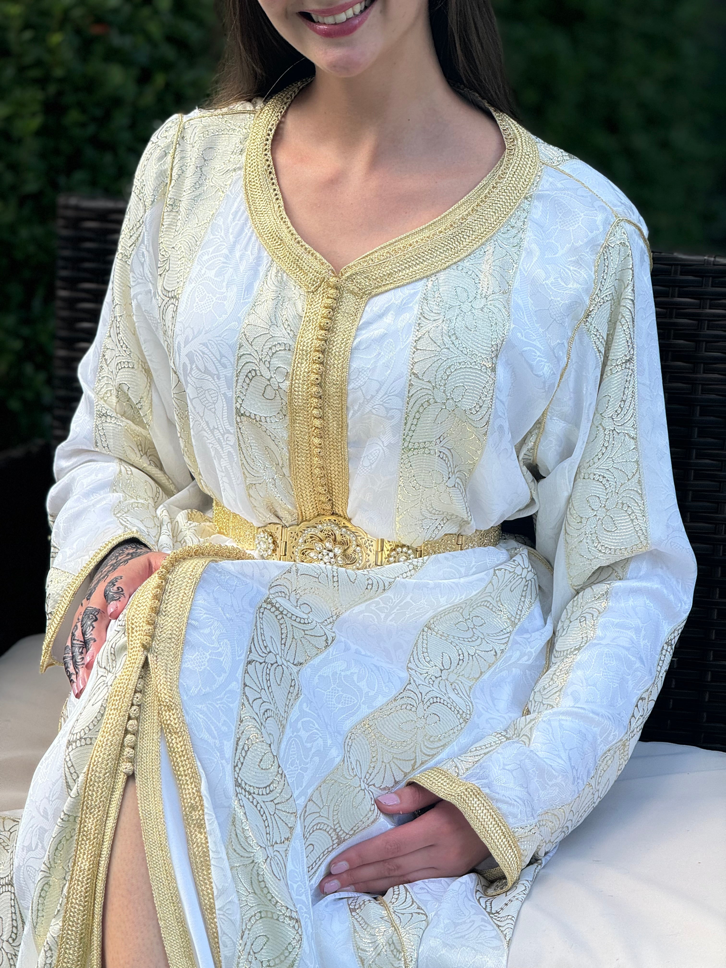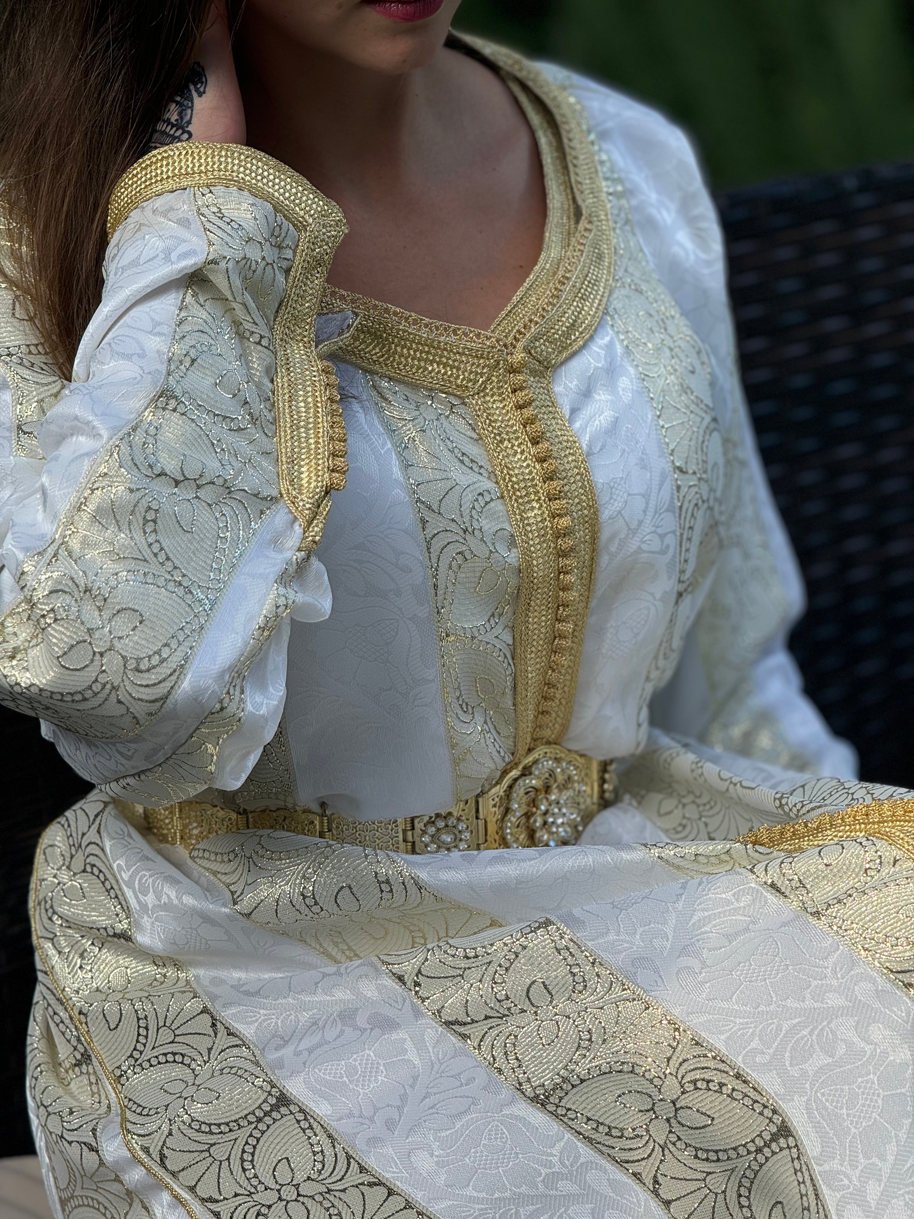 Discover the impeccable craftsmanship of Takchita israe made in Morocco with premium materials. This elegant Takchita adds a touch of refinement and enduring elegance to your wardrobe.