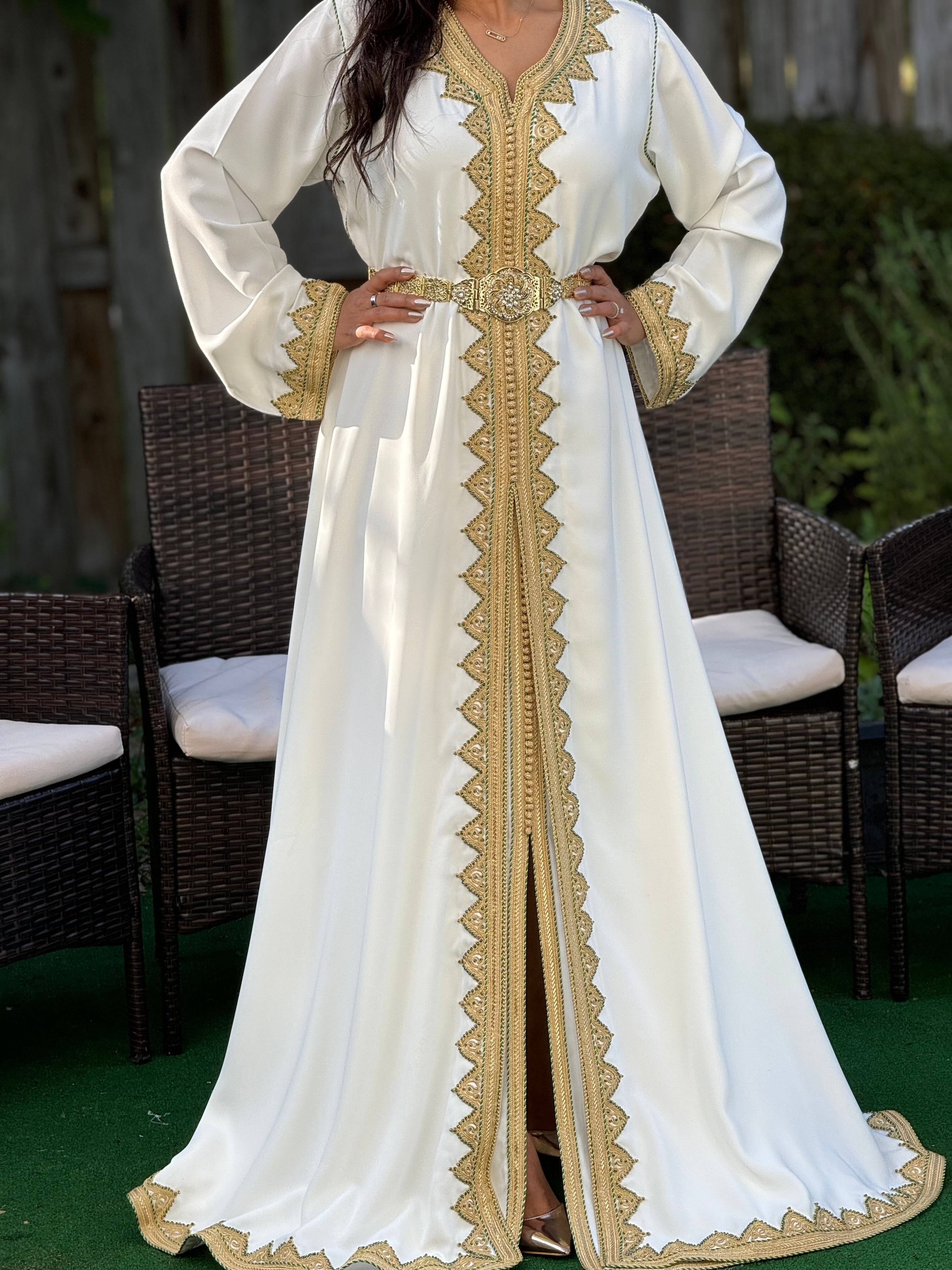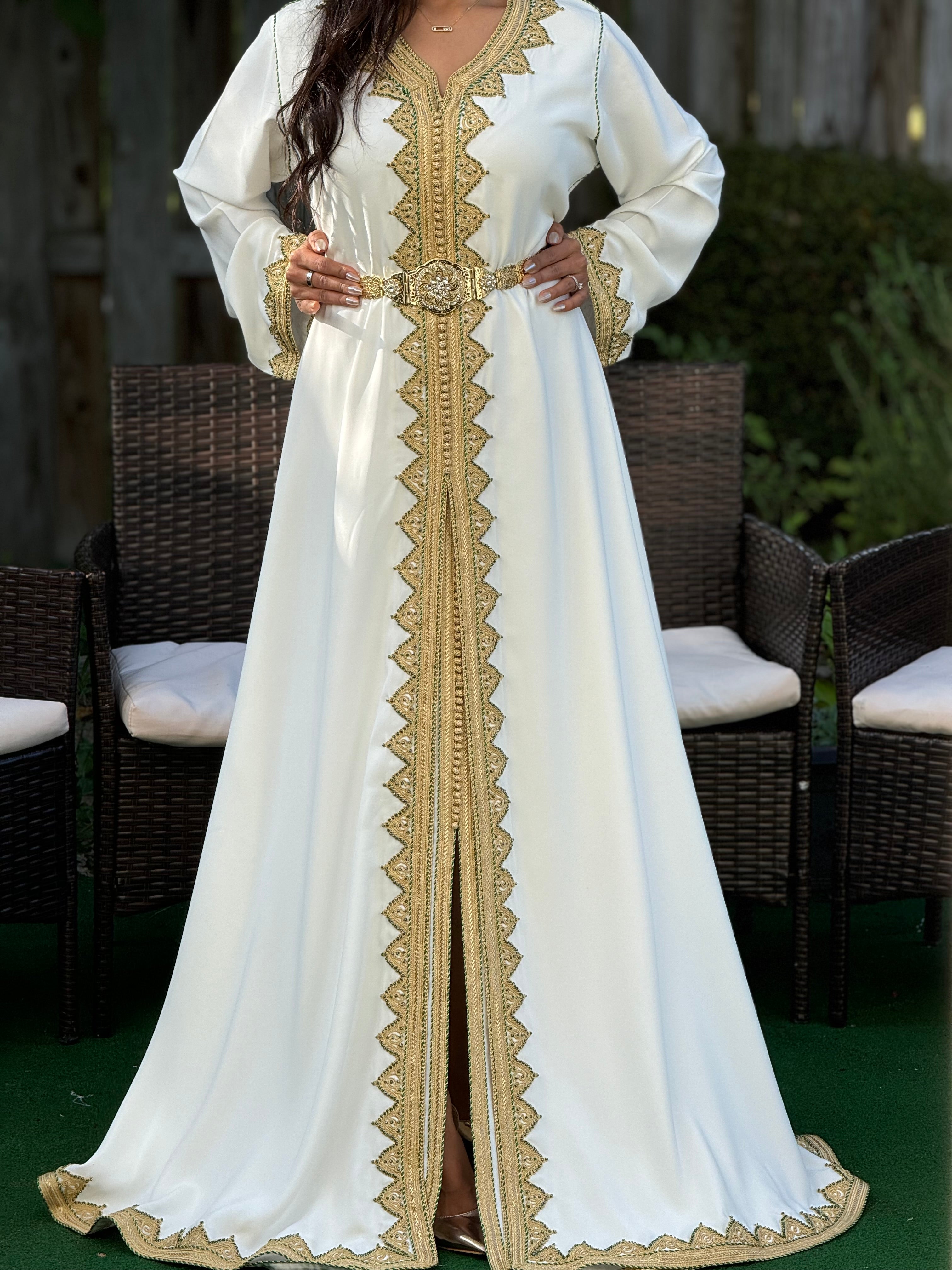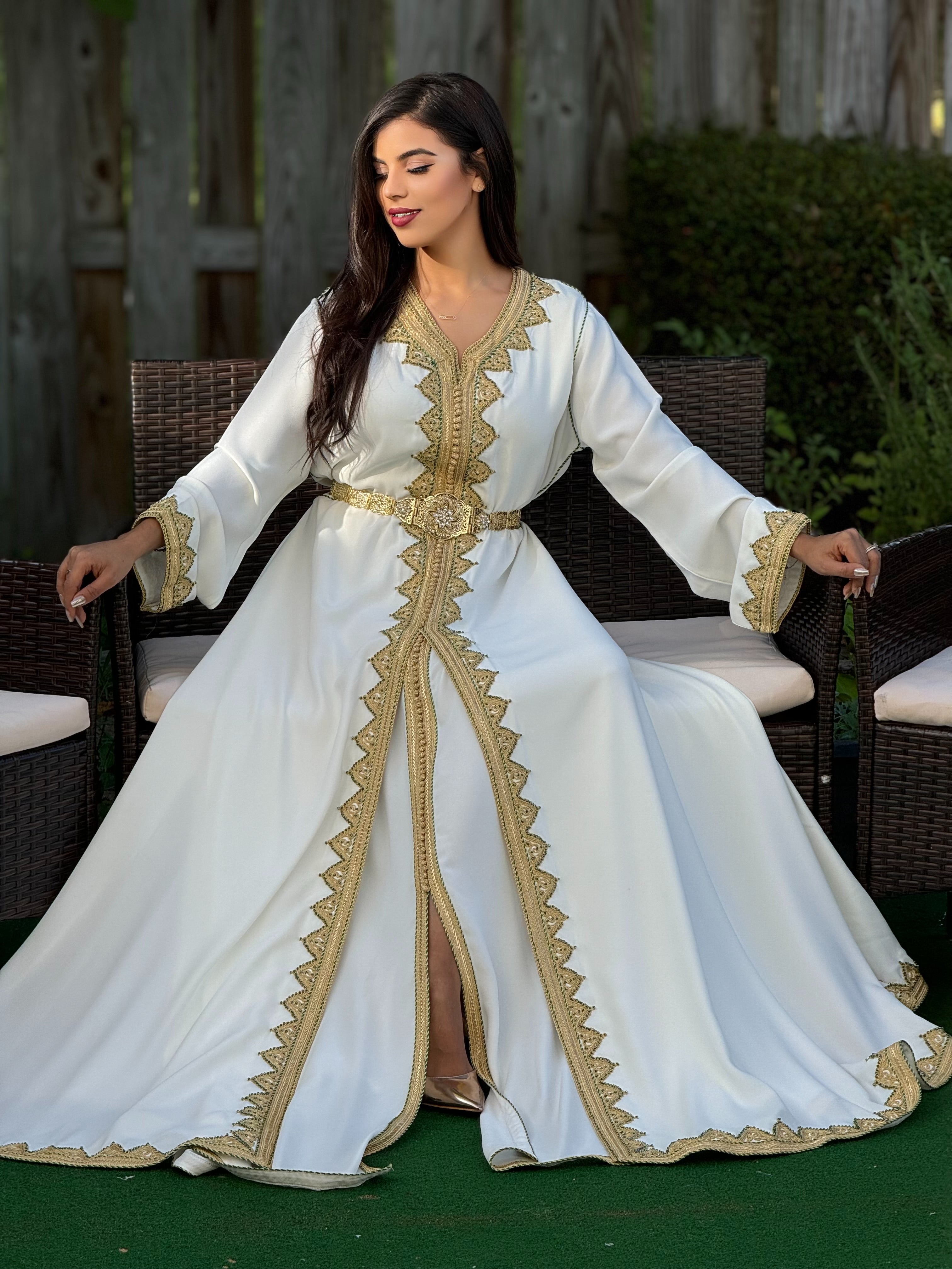 Discover the Takchita soundous, a luxurious Moroccan caftan made with premium crepe material Sophisticated and stylish, this elegant piece adds a touch of luxury for bridal occasion